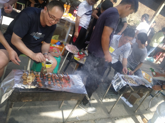 上午達到目的地后,各小組有條不紊的開始了第一項活動-自主烹飪。大家烹飪的內容也是豐富多彩,有燒烤、火鍋、包餃子、還有本地特色豬肉飯。平常不怎么露手的各位可都深藏不露,在公司里研發中心團隊可是有著燒烤達人美稱的。今年又新晉一組美食達人團隊總裁、人力組,因為他們成功打破了往年幾次燒豬肉飯失敗案例,這個逆襲非常漂亮!毫不低調的說風馳這個大家庭里有著廚師級別的成員也是高手云集的。經過一番忙碌之后,大家心滿意足的享受完一起親手烹飪的美食。