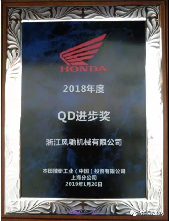 2019年1月榮獲本田頒發的“QD進步獎”